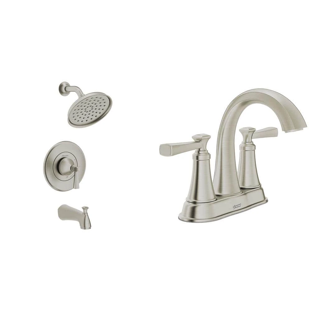 - BUNDLE INCLUDES: Two-handle, 4-in. centerset sink faucet and tub/shower faucet