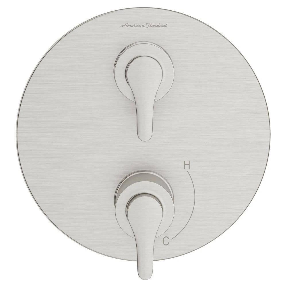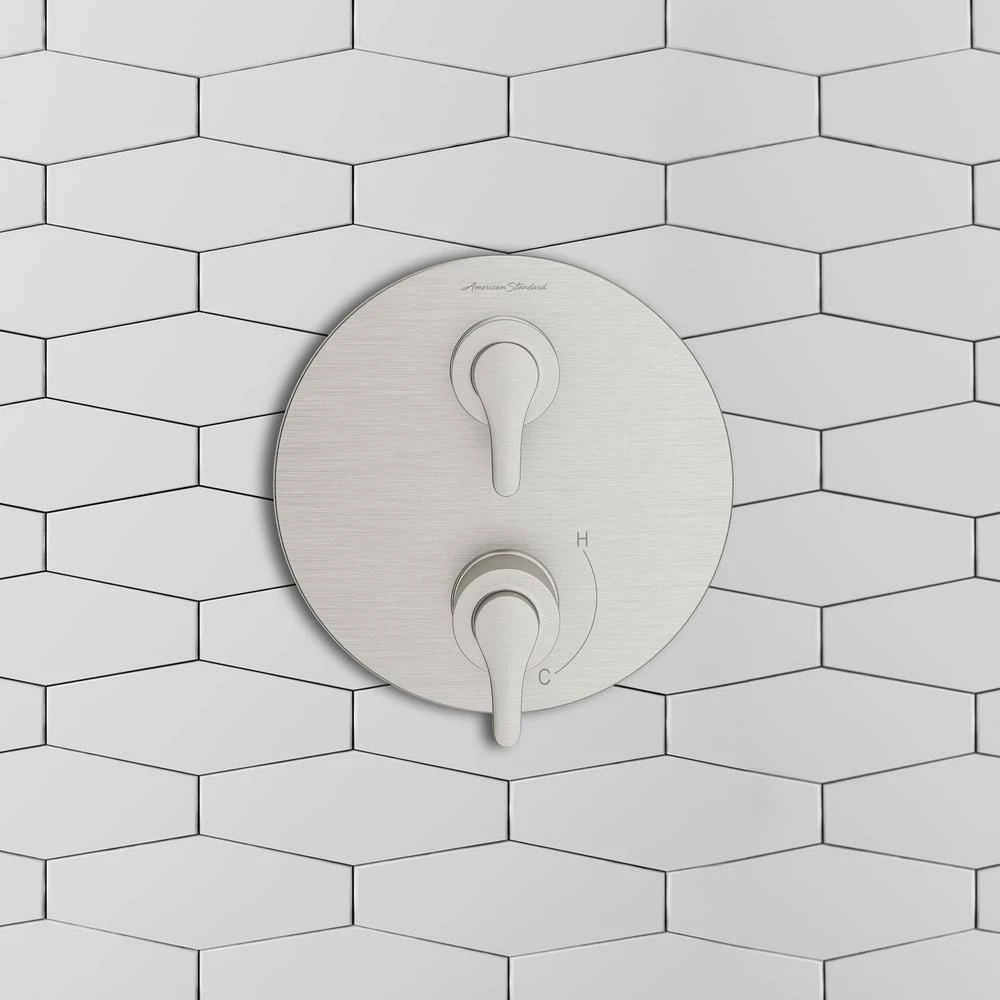 The urban-inspired Studio S 2-Handle pressure balance Integrated Shower Diverter Trim by American Standard is the perfect fusion of contemporary style and flawless functionality for today’s home. When paired with the exclusive Flash Rough-in Integrated Shower Diverter Valve, sold separately, you can easily alternate between water outlets. The Studio S Trim coordinates perfectly with the entire Studio S Collection. Requires Flash Rough-in Integrated Shower Diverter Valve RU521 with 2-outlet capability or RU531 with 3-outlet capability.