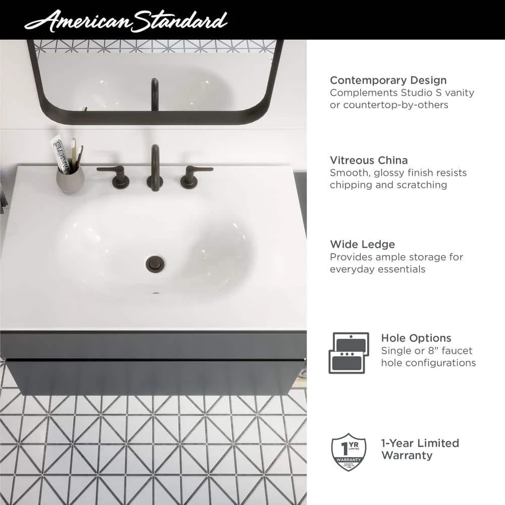 The Studio S Vanity Top Sink from American Standard features a smooth, glossy finish and clean, contemporary lines to complement the Studio S Collection. Made of durable vitreous china, this vanity top sink resists staining, chipping and scratches for lasting beauty. For a uniquely impressive bathroom makeover, pair it with the coordinating Studio S vanity and faucet, each sold separately.