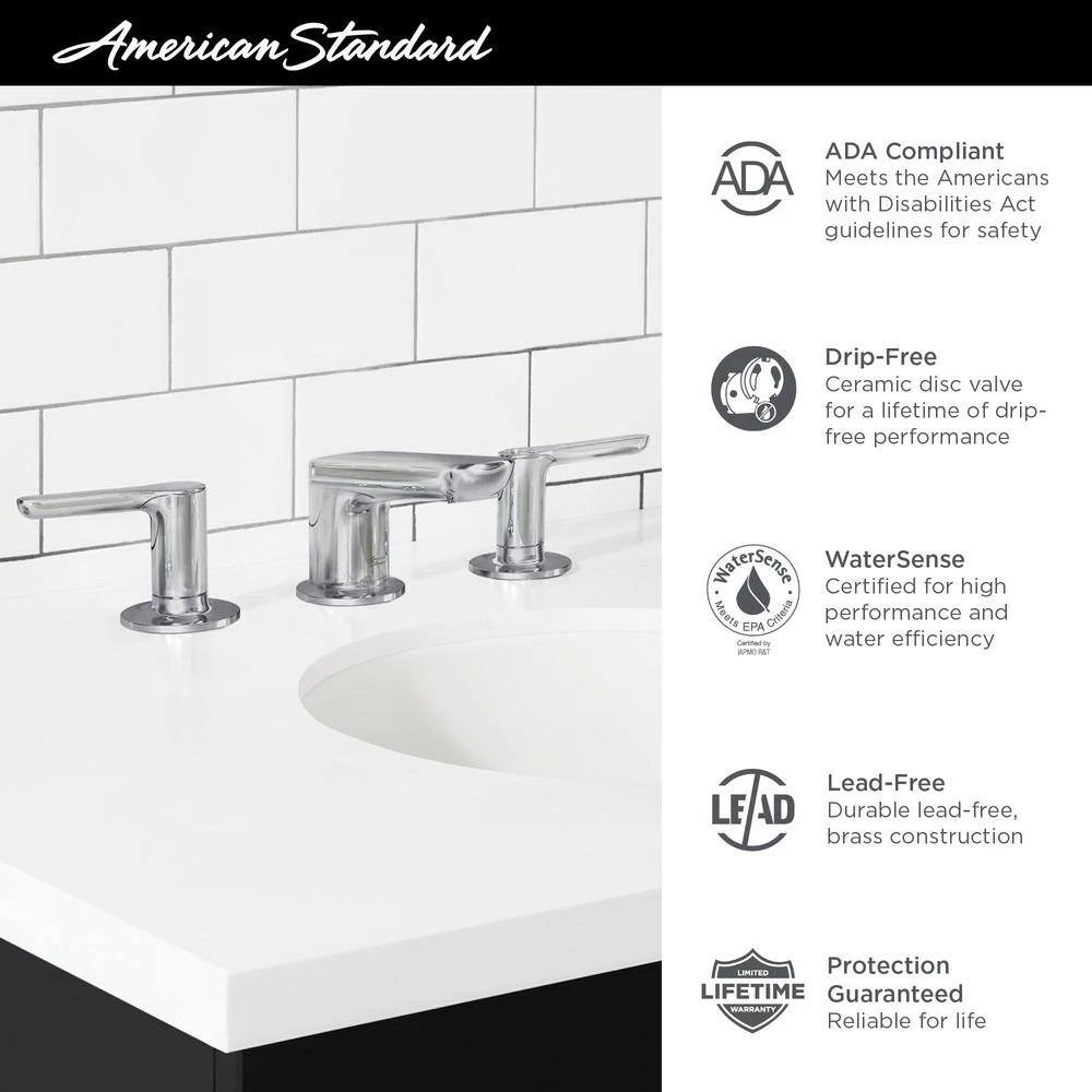 When every detail counts, the urban-inspired Studio S Widespread Low-Spout Bathroom Faucet delivers. Offering clean lines, superior performance, and durability for today’s modern bathroom. Intended for a busy, no-nonsense lifestyle, you’ll love its streamlined profile, eco-conscious, water-saving design, drip-free dependability, and choice of sleek handle styling.
