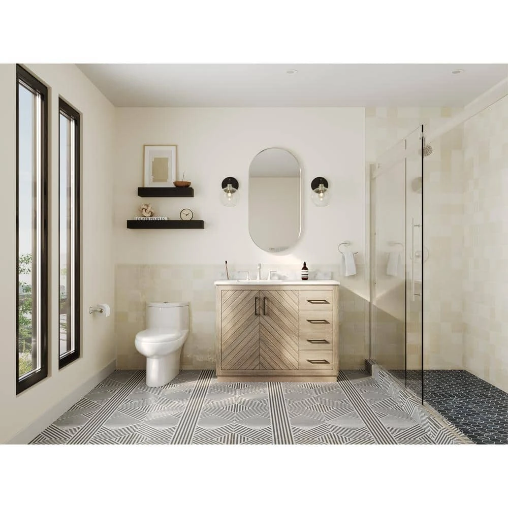 Complete your bathroom with this Tofino Complete 1-Piece 1.1 GPF Dual Flush Elongated Toilet in White with Slow Close Seat. The efficient design uses 20 percent less water than standard toilets. It comes with a slow-close seat and cover, which adds to the elegant design.