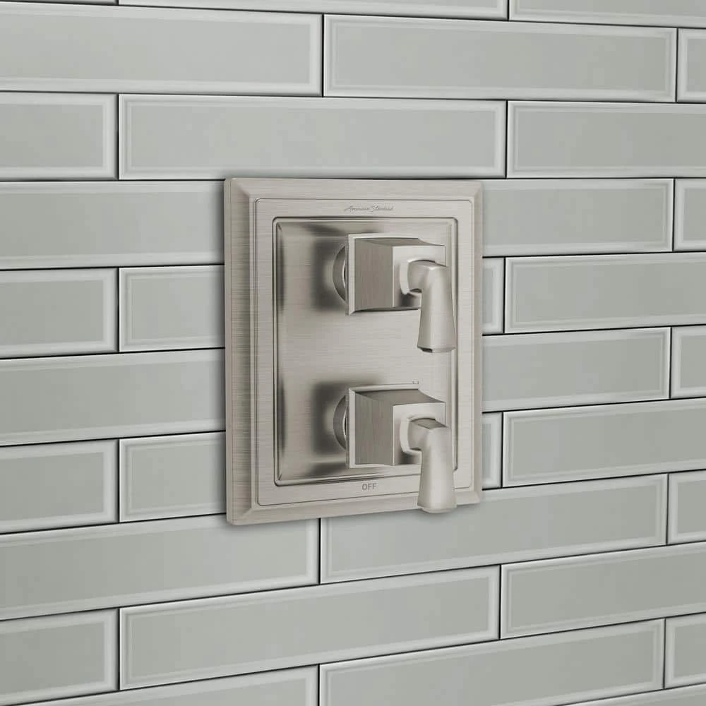 The Town Square S 2-Handle pressure balance Integrated Shower Diverter Trim by American Standard is an elegant solution for a more enjoyable shower. When paired with the exclusive Flash Rough-in Integrated Shower Diverter Valve, sold separately, you can easily alternate between water outlets. The Town Square S Trim is inspired by classic architectural shapes and crown molding to create a timeless look that enhances your bathroom and coordinates beautifully with the entire Town Square S collection. Requires Flash Rough-in Integrated Shower Diverter Valve RU521 with 2-outlet capability or RU531 with 3-outlet capability.