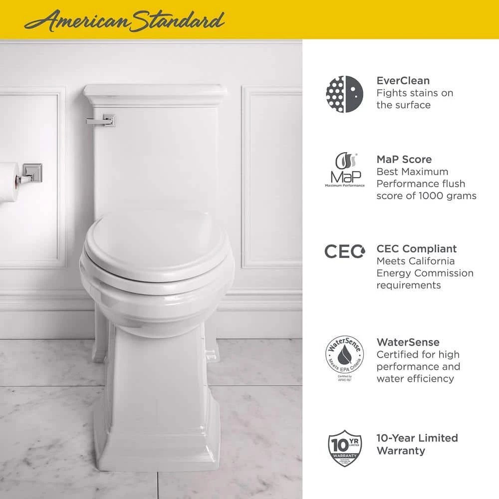 - High efficiency 1.28 GPF/4.8 LPF helps save water and meets WaterSense requirements