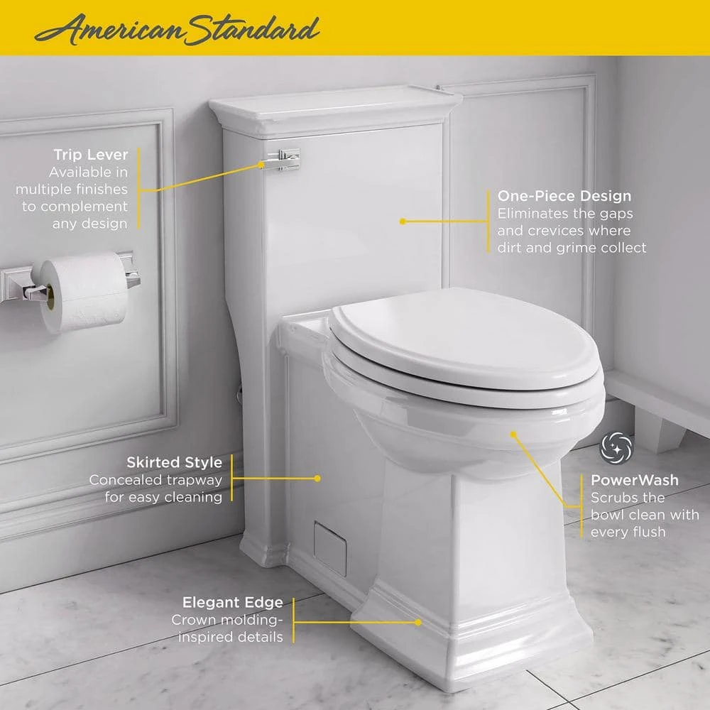 The Town Square S Skirted 1-Piece Right-Height Elongated Toilet from American Standard is inspired by classic American architecture. With a concealed trapway for a look that’s updated and easy to clean. Made of durable vitreous china, this distinctive style with crown molding details and a profile reminiscent of the Art Deco era is designed to coordinate beautifully with the entire Town Square S Collection.
