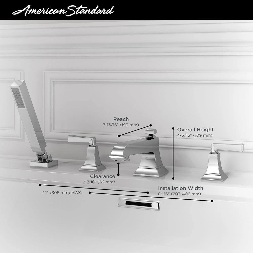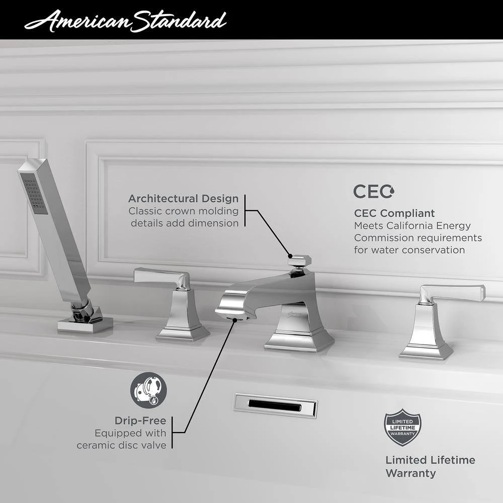 The Town Square S Roman Tub Filler by American Standard provides a beautiful option for any style of bathroom, from traditional to transitional. Stately square shapes pair with architectural details inspired by crown molding for a classic silhouette. A durable brass construction means the tub faucet will stay looking new for years. Part of the Town Square S collection, this tub faucet coordinates beautifully with the other fittings and fixtures, for an easy solution to your next bathroom remodel.